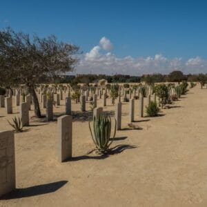 Lunch will be provided en route. The tour then continues to the western outskirts of El Alamein, a scenic town overlooking the Mediterranean Sea, to visit the WWII Cemeteries. Here, you will pay tribute at the meticulously maintained final resting places of soldiers from the Commonwealth, Greek, Italian, and German forces. Following this poignant and insightful tour, you will be transferred back to your hotel in El-Alamein.