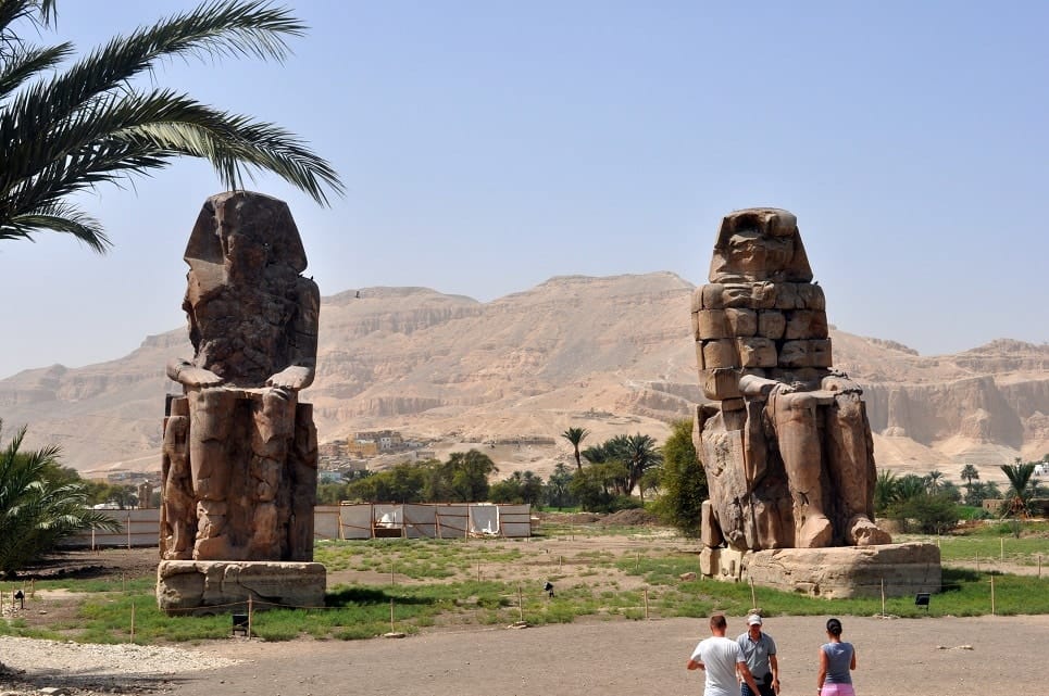 Colossal Photo Stop: Take pictures at the massive Colossi of Memnon.